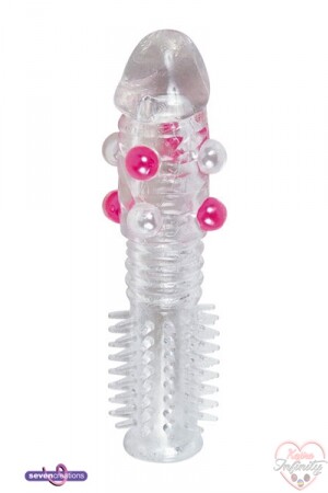Gaine pour pénis en silicone, texture souple et douce, tête réaliste, perles rigides et nodules souples, pour améliorer les sensations des 2 partenaires.
