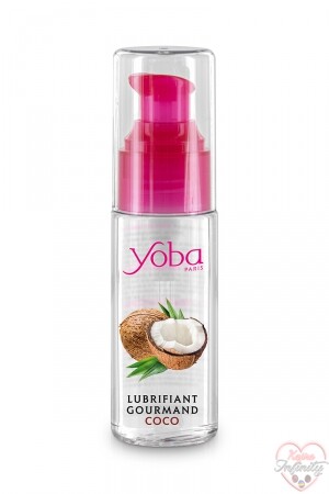 Lubrifiant intime de haute qualité à base deau aromatisé à la noix de coco. Le lubrifiant Yoba apporte une lubrification confortable aux rapports sexuels.