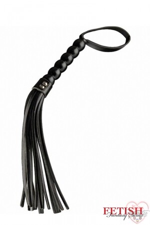Martinet noir BDSM avec manche en bois et 22 lanières en cuir souple pour vos jeux de soumission et de domination, par Pipedream, collection Fetish Fantasy.