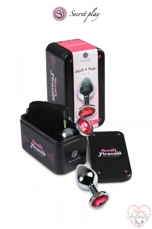 Superbe plug en métal fabriqué par la marque espagnole Secret Play. Ce modèle pèse 49 grammes pour une longueur de 7,5 cm et un diamètre de 2,5 cm pour la partie la plus large. Il est décoré dun strass fuchsia.