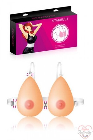 Paire de faux seins 100% silicone avec bretelles amovibles.