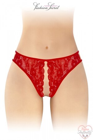Le string ouvert rouge Victoria de la marque Fashion Secret est fabriqué en dentelle douce avec un décor floral sur le devant.